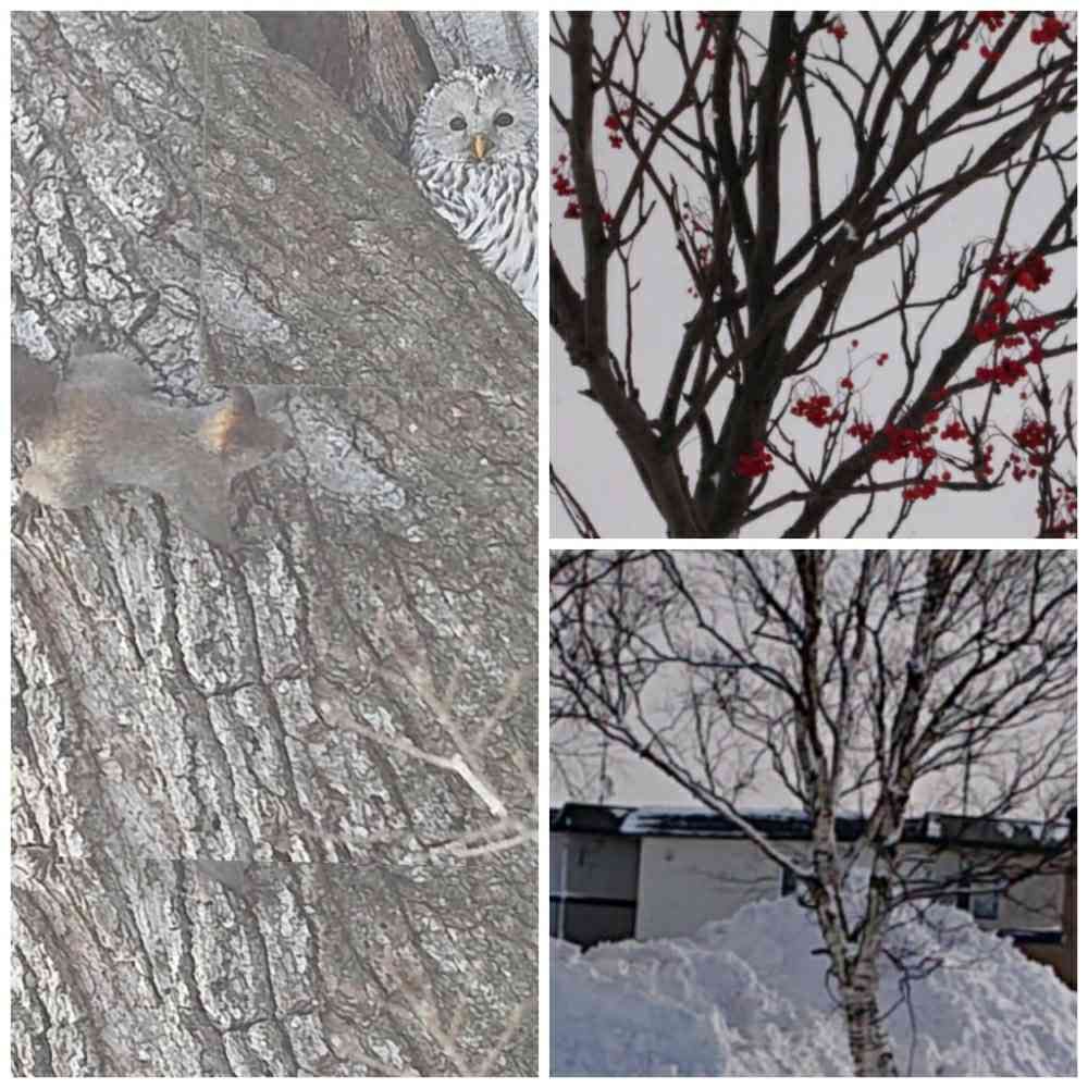 「リスとフクロウが会合」って写真家の方の特集記事で、こんな会話が聞こえてきそうな一幕…とありましたよ。