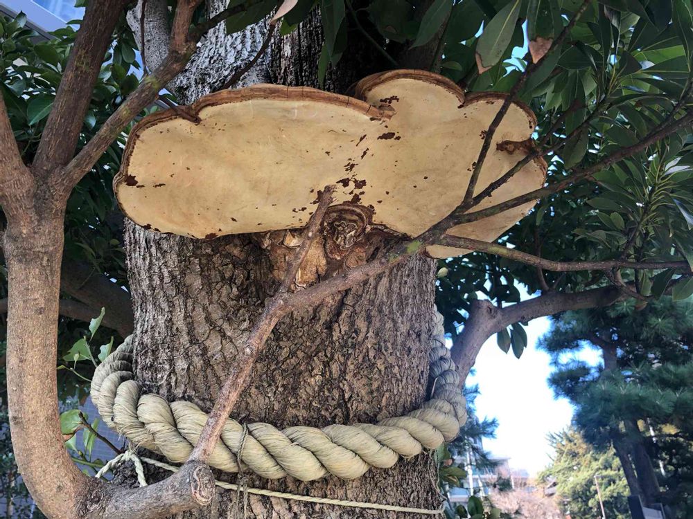 神社の木に生えていました