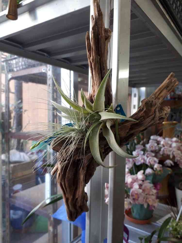 流木アレンジメントになっているエアープランツのフックシーに花が咲きそうです✨
