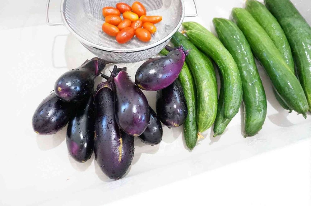 一泊旅行から帰ったらみんな大きくなってた! キュウリ食べきれない日々です。贅沢〜 ダイソーの種1つからの収穫です(*^^*) 茄子も99円の苗からわんさか。
