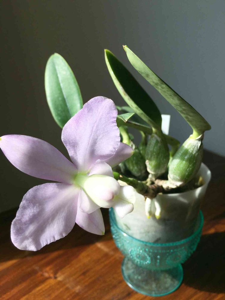 Cattleya walkeriana var. semi-alba 'Tokyo No.1' SM/JOGAと札が付いたのをゲットしたのですが…花は白くないし、リップも赤紫ではない…😮