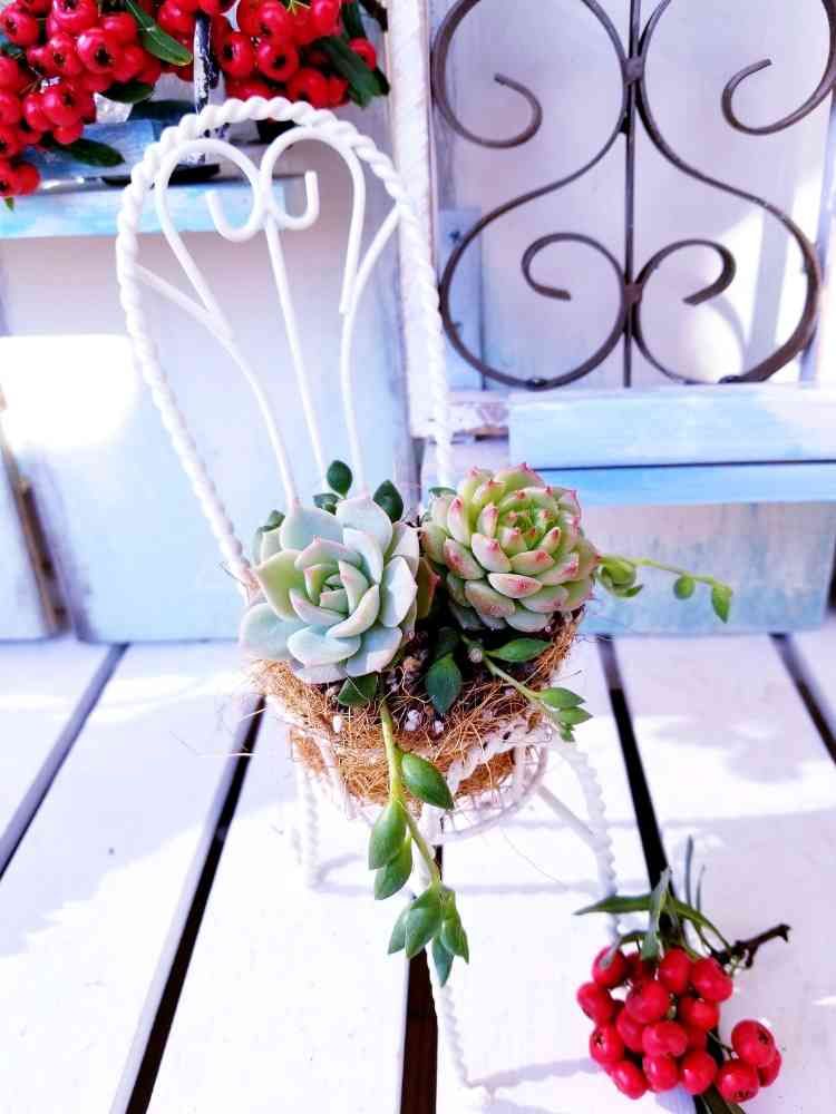 いつも思うんだけど、この椅子とか前にupしてた、ゆりかごとか靴とか、ワイヤー鉢がほんと可愛いくて素敵だよね♥️