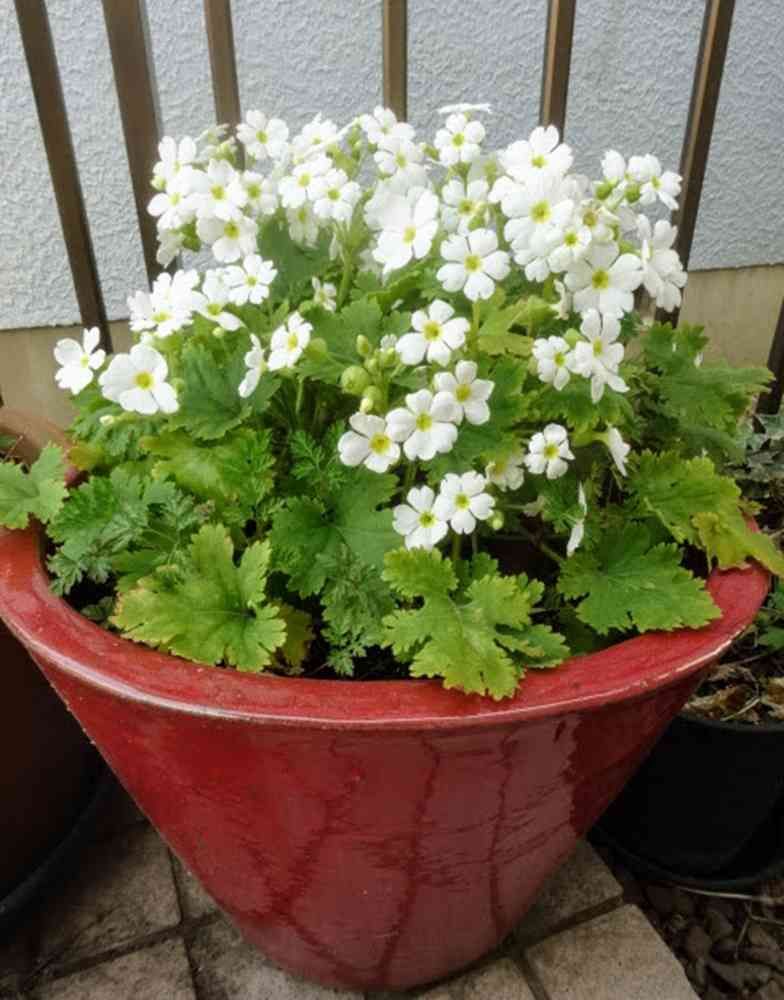今日のお花、サクラソウの仲間、プリムラ・シネンシス春風桜「白波」です。サクラソウというのは、日本に自生する、プリムラ・シーボルティーのことだと思うのですが、現在は西洋サクラソウの仲間、とくにマラコイデスをサクラソウと呼ぶことが多いみたいですね。シーボルティーは日本桜草と呼んで区別しているようです。なので、σ(^▽^;)も、仲間のシネンシスの園芸種をあげてみました。シネンシスは、中国原産で、別名雪桜というほど寒さに強いプリムラです。この写真は2016年のものです。2012年くらいに3色セットで苗を買ったと思うのですが、他の2色はいなくなってしまい、白の白波だけが残りました。このころが一番元気で良く茂っていたのですが。。。去年の猛暑に耐えられなかったみたいですorz