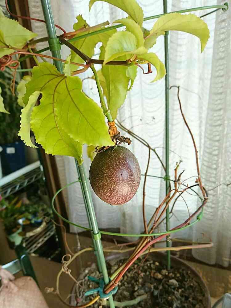 一個は自然落下して二、三日後に食べました。小さいながらもしっかり中身は、パッションフルーツの味でしたよ✌