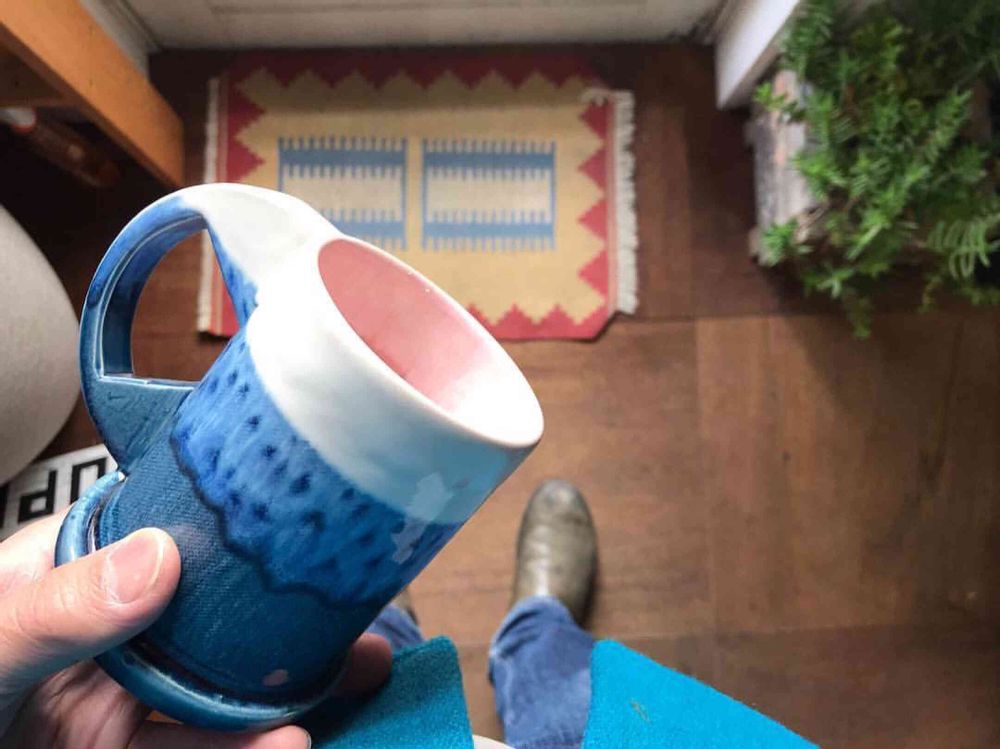 ナイスな配色、インディゴブルーに内側がピンクのラージマグカップ!