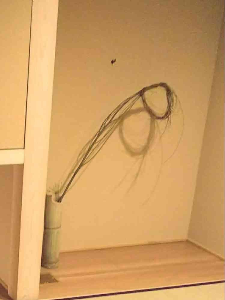 初釜でシダレヤナギの代わりに使った六角柳の結び柳です。根〆に茴香を使ってみましたが、全く締まりませんでした。
