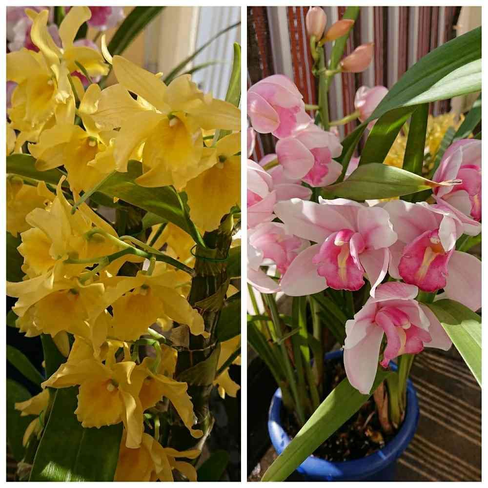 ピンク色のはシンビジウムです❤️シンビジウムはいつもは玄関に置いてあります😄寒くても日陰でも元気に咲いてくれる素敵な蘭です(*^.^*)🌱🌸✨