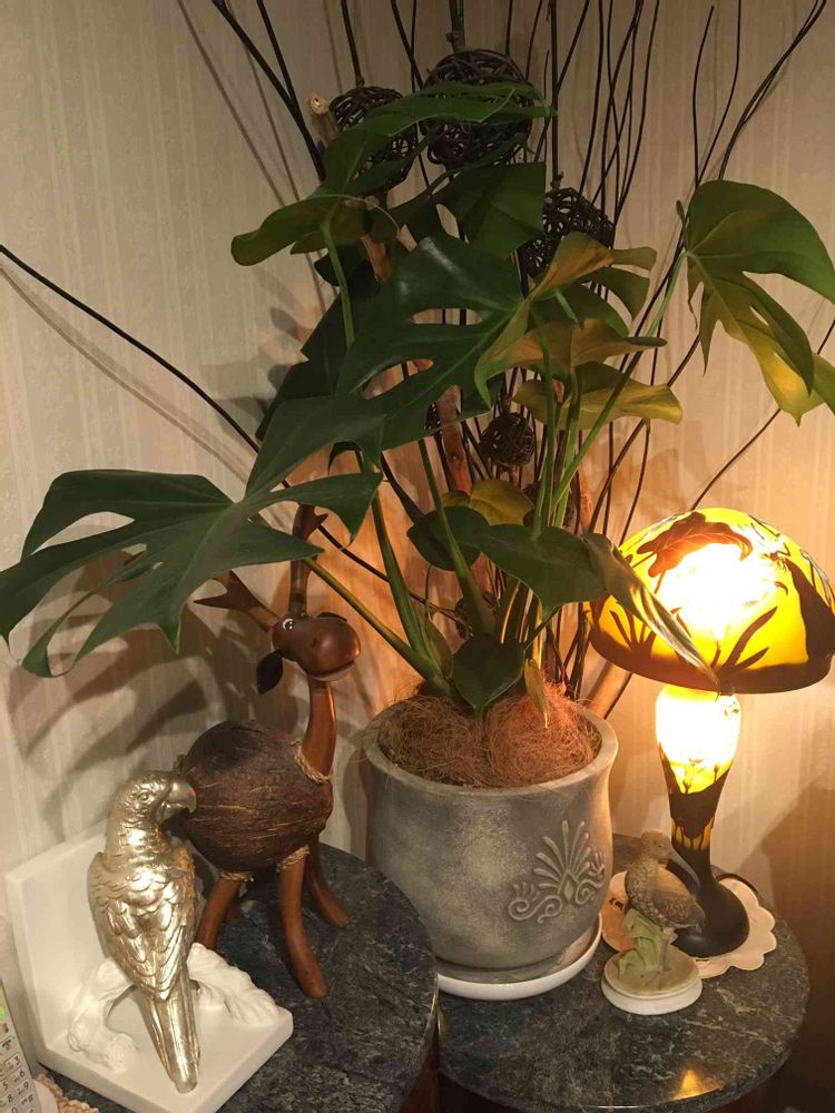 部屋の模様替えをして日のあまり当たらないコーナーにモンステラを置きました☘