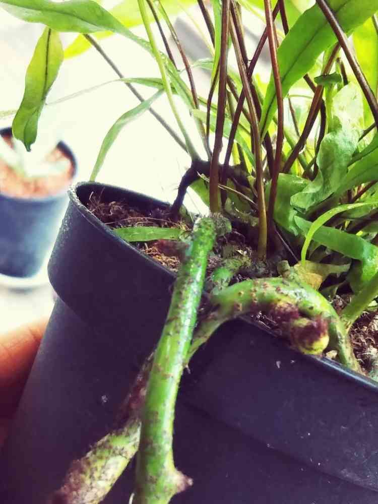 ミクロソリウム、毛深い根茎が親しみを感じる🤭