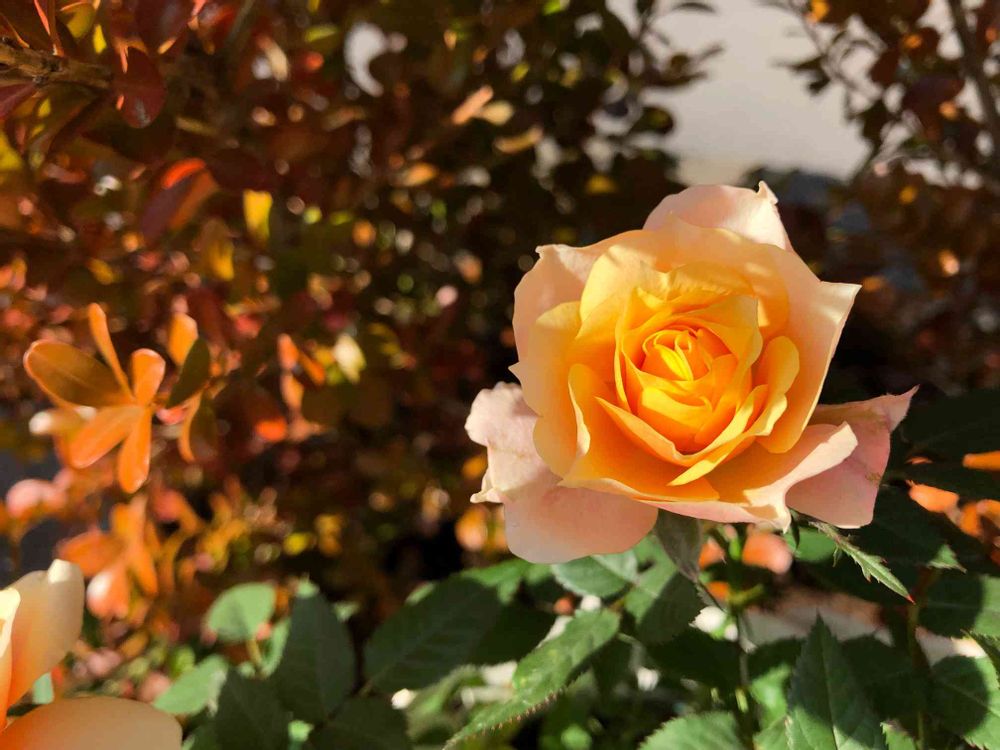 ブロンズ色に紅葉しているボックスウッド(西洋ツゲ)をバックに撮りました。