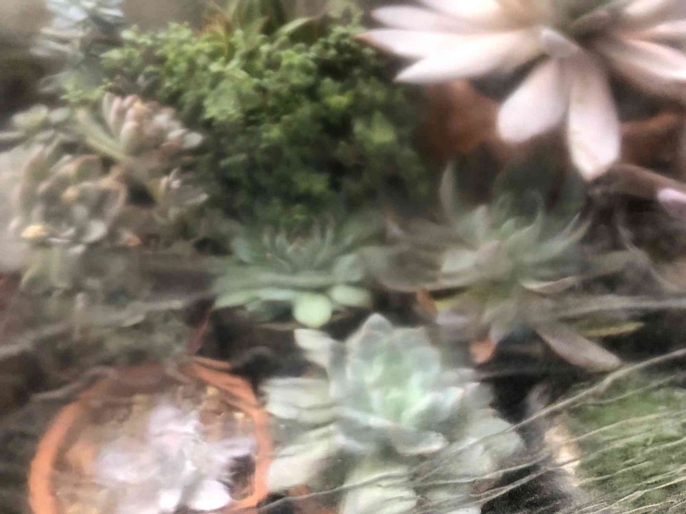 日光浴を終えた多肉たちを簡易温室へ。うっすらと曇ったビニール越しに見える多肉は夢の国!?
