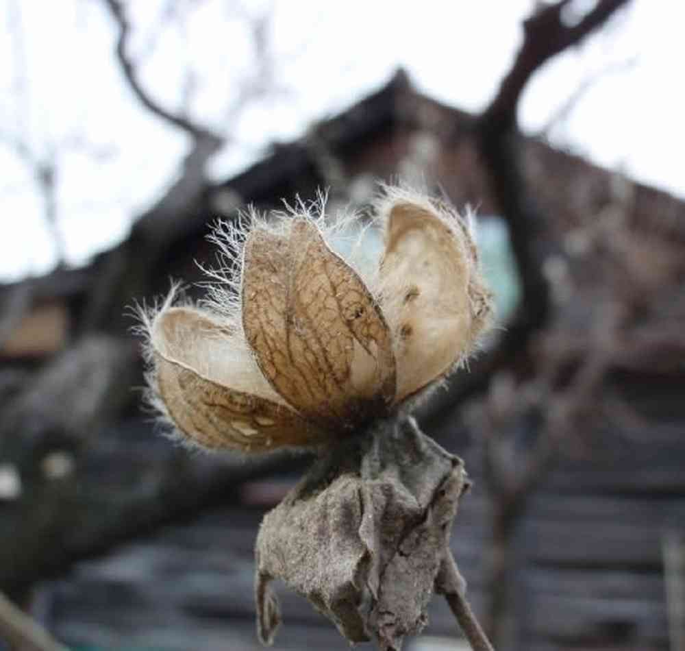 芙蓉の実が枯れている様子はなかなか魅力があり、枯芙蓉は、俳句の冬の季語になっています。