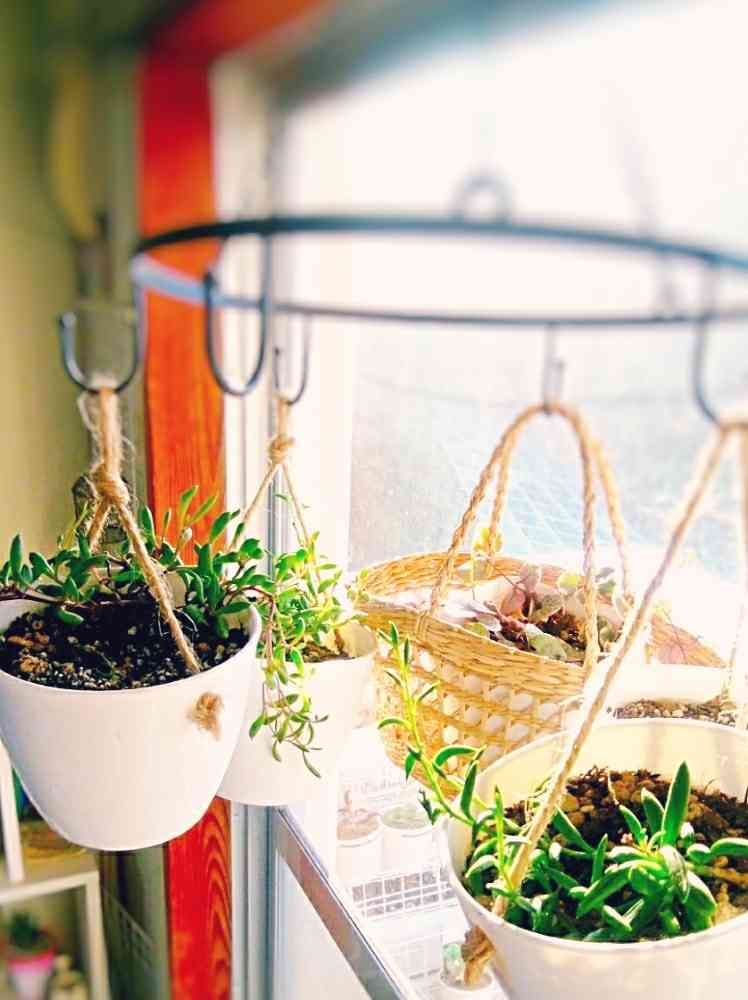 いつもお日さま目指して、カーテンレールを行き来してるぶら下がりさんたちです💛🌿✨