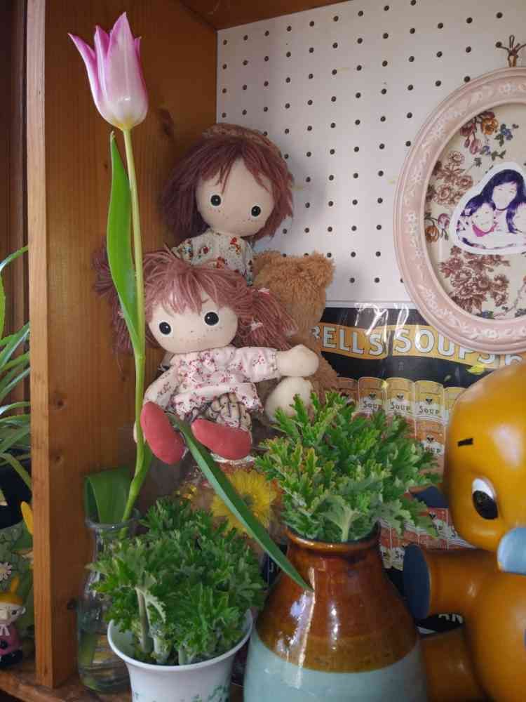 棚を作った時に可愛い写真立てを見つけたので、古い写真をいれてみました
