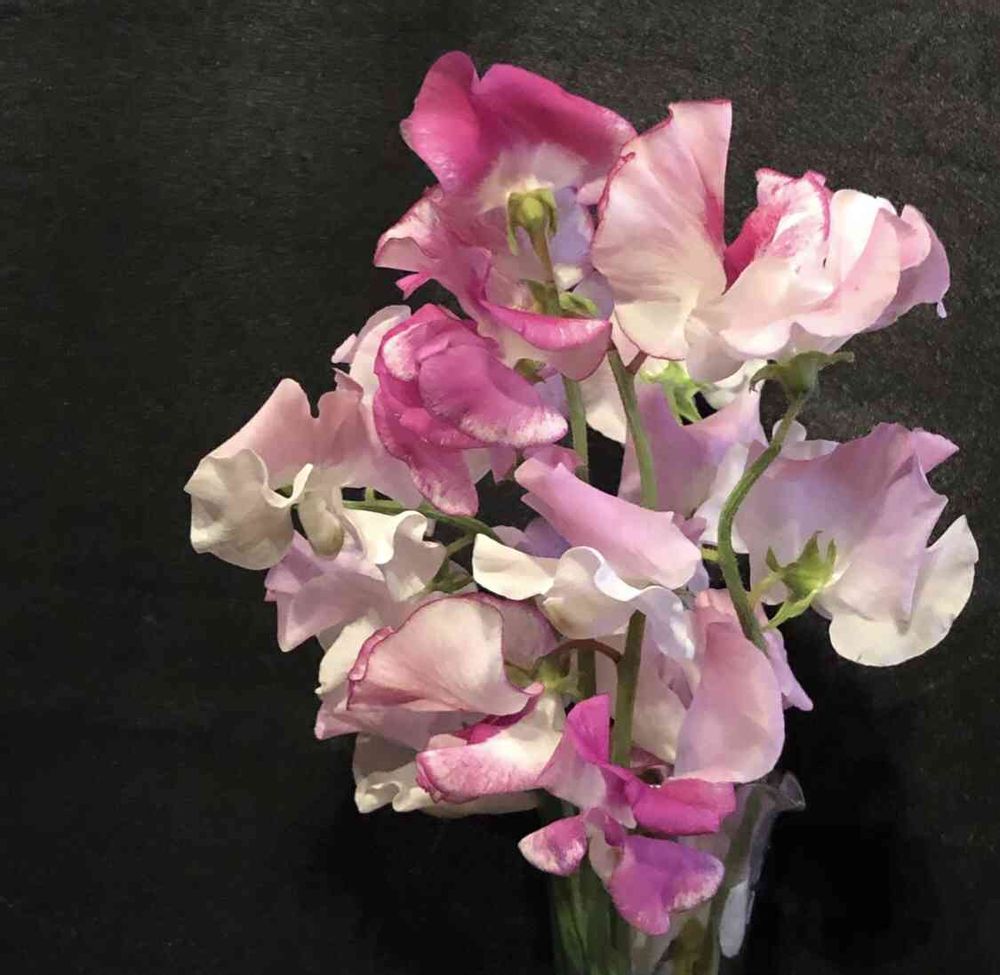 黒をバックにいただきもののスイートピーを撮ってみました(*´∇`*)♬