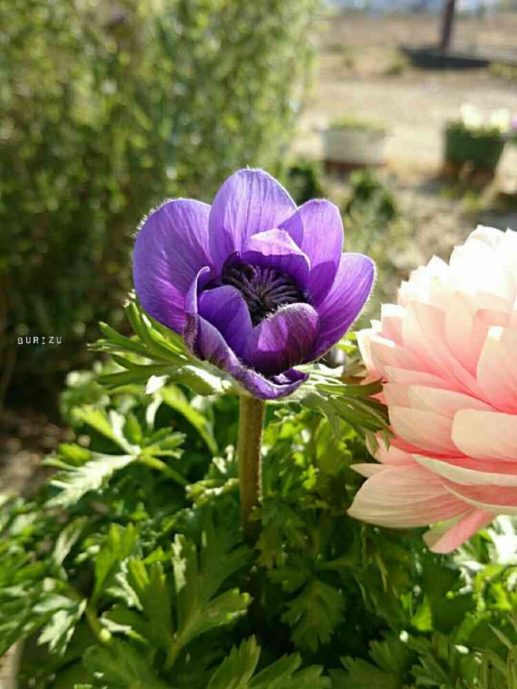 アネモネ凛々花のパープルが少し開いてきました☺