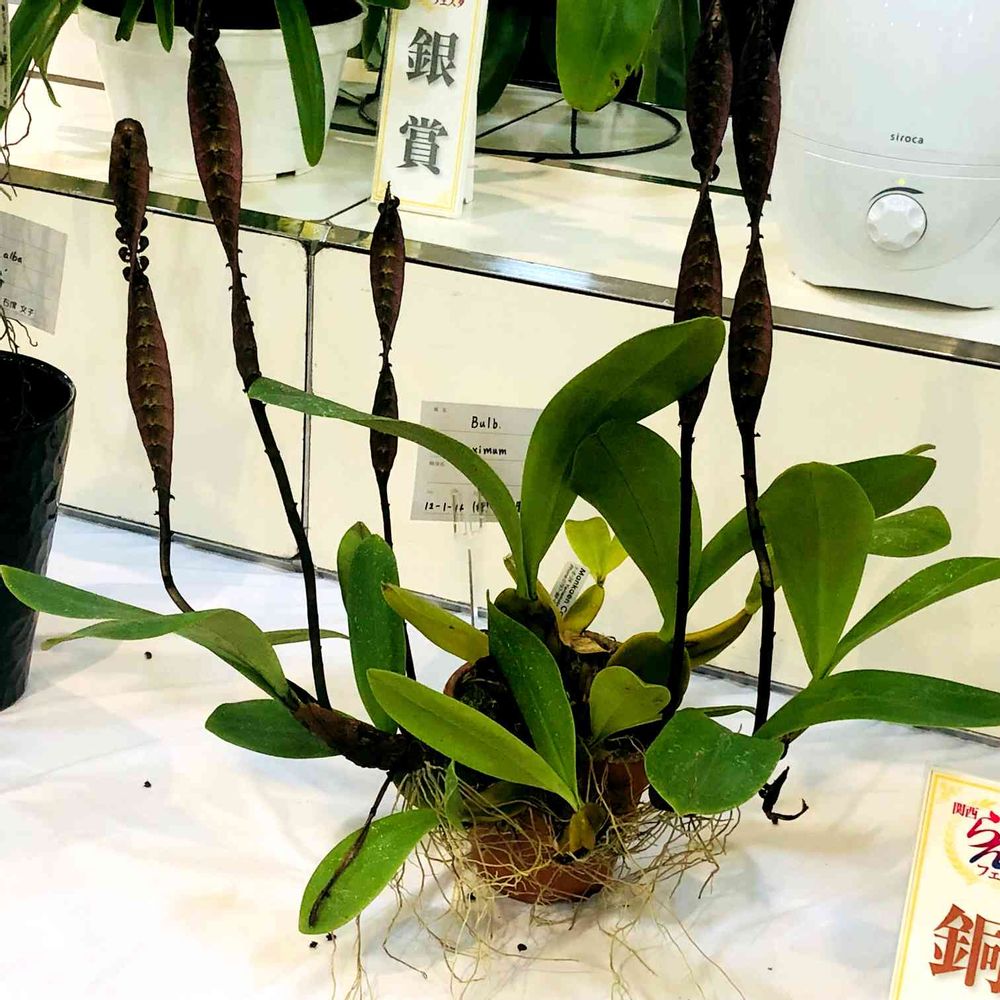 関西らんフェスタのコンテスト展示ブースよりBulb maximum別名コブラオーキッド確かにコブラが🐍鎌首を持ち上げてフード広げて威嚇してるようですね🤔
