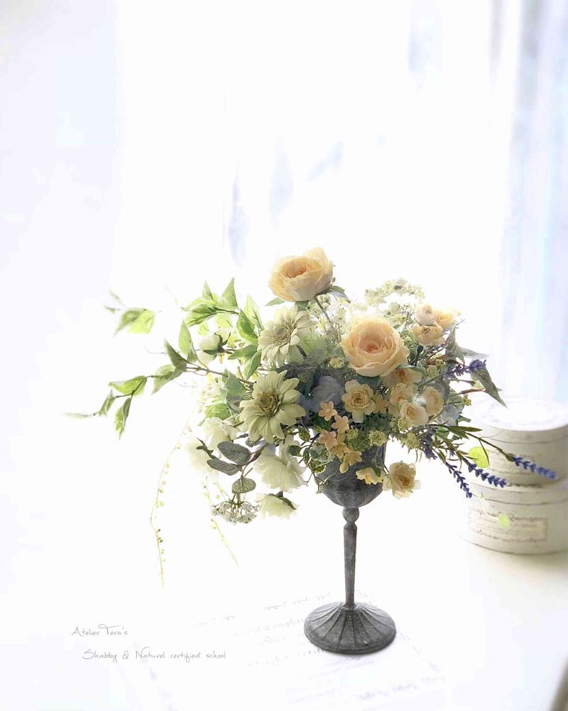 はじめまして。アトリエテラスと申します。千葉県佐倉市でアーティフィシャルフラワーアレンジ教室を主宰しております。体験レッスン受付中です。お気軽にコメントにてお問い合わせください。 シャビーアンドナチュラル千葉認定校です。