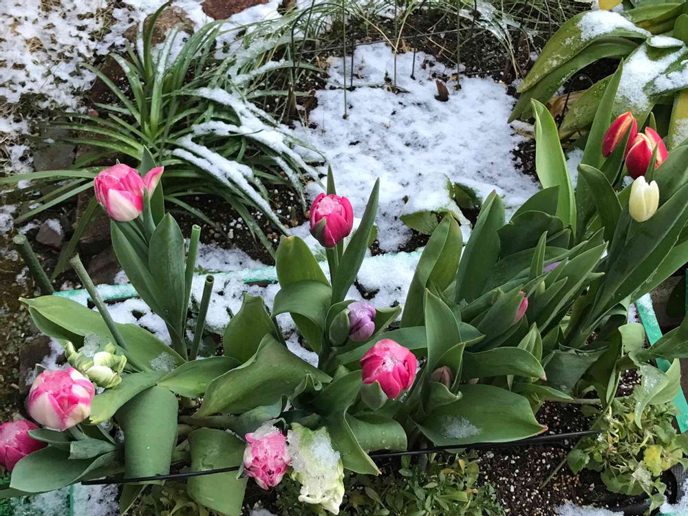 チューリップ🌷と積もる雪❄️