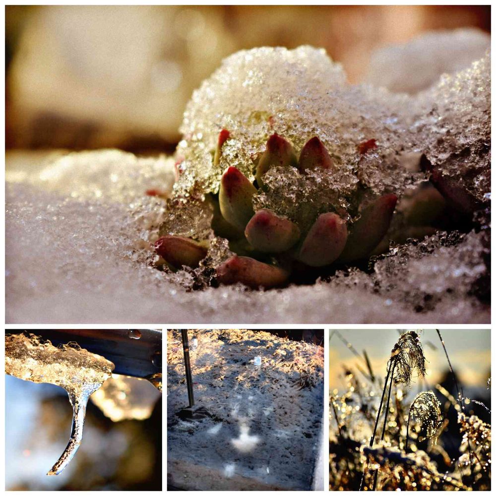 雪と多肉かわいい💓枯れ草ですらキラキラしてキレイに見えます✨