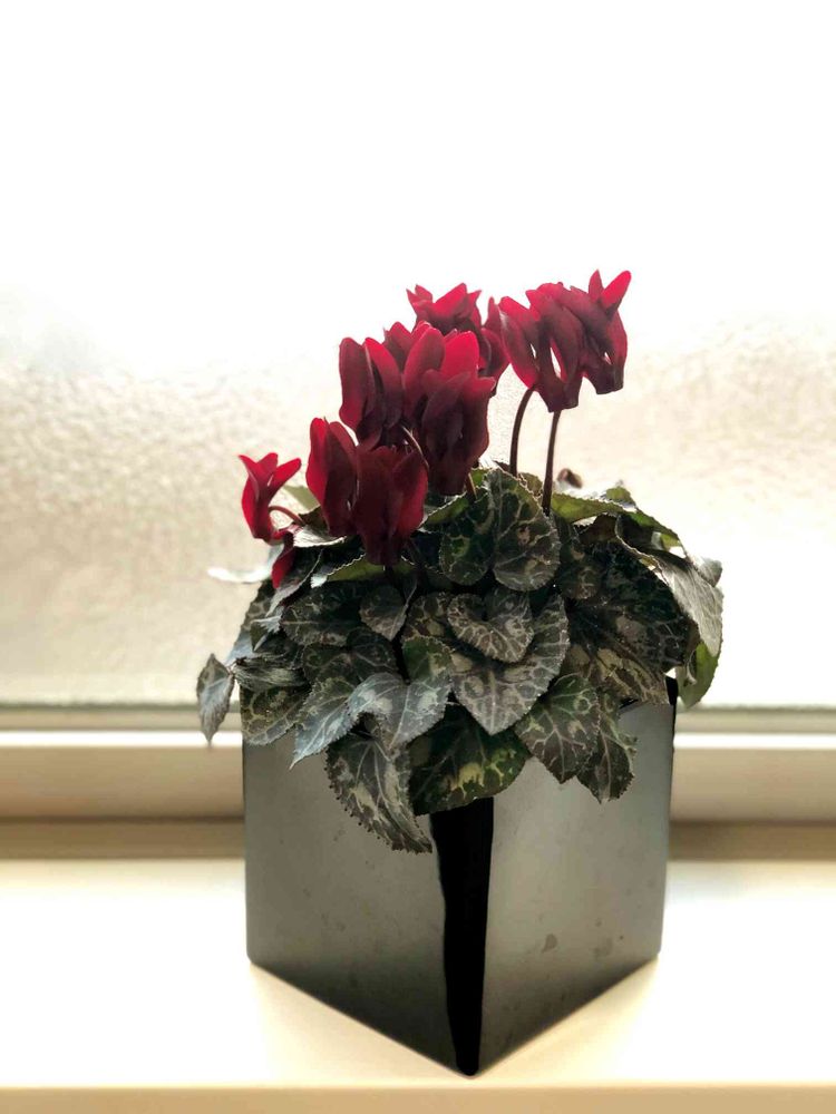 そんなシックなシクラメンには黒いスクエアを合わせて大人の雰囲気に。