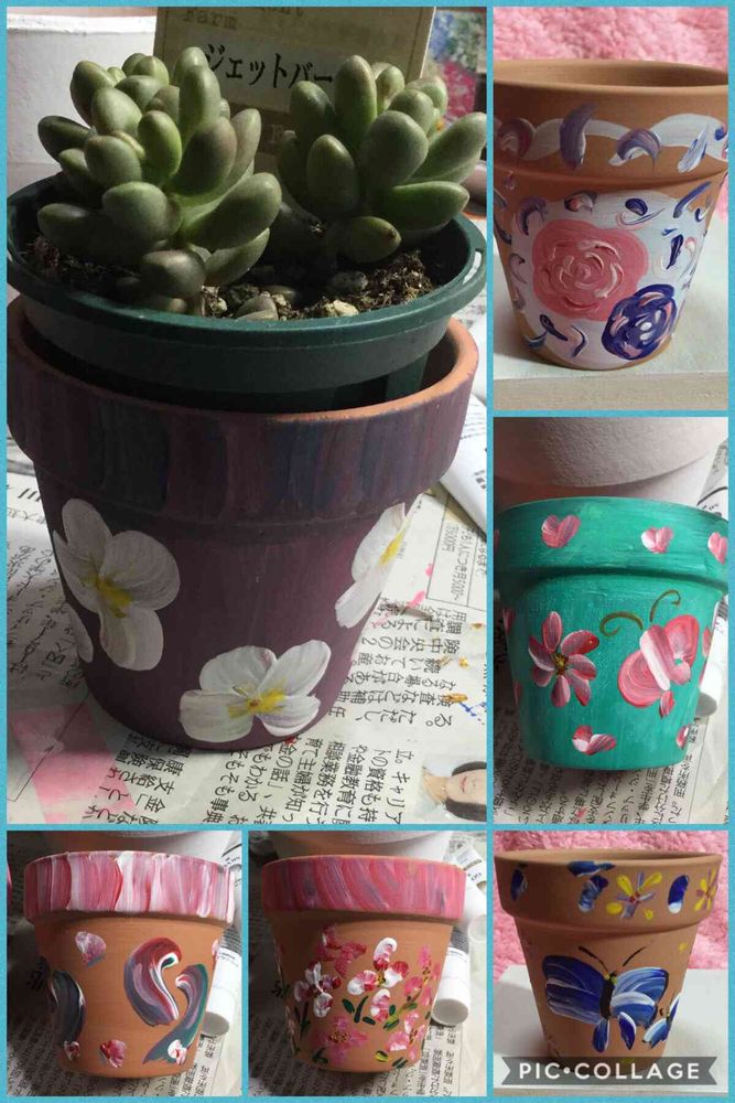 すごいですね💗私はこの前ダイソーで素焼き鉢買って一色で塗っただけですよ~💦せめてシールぐらい😅