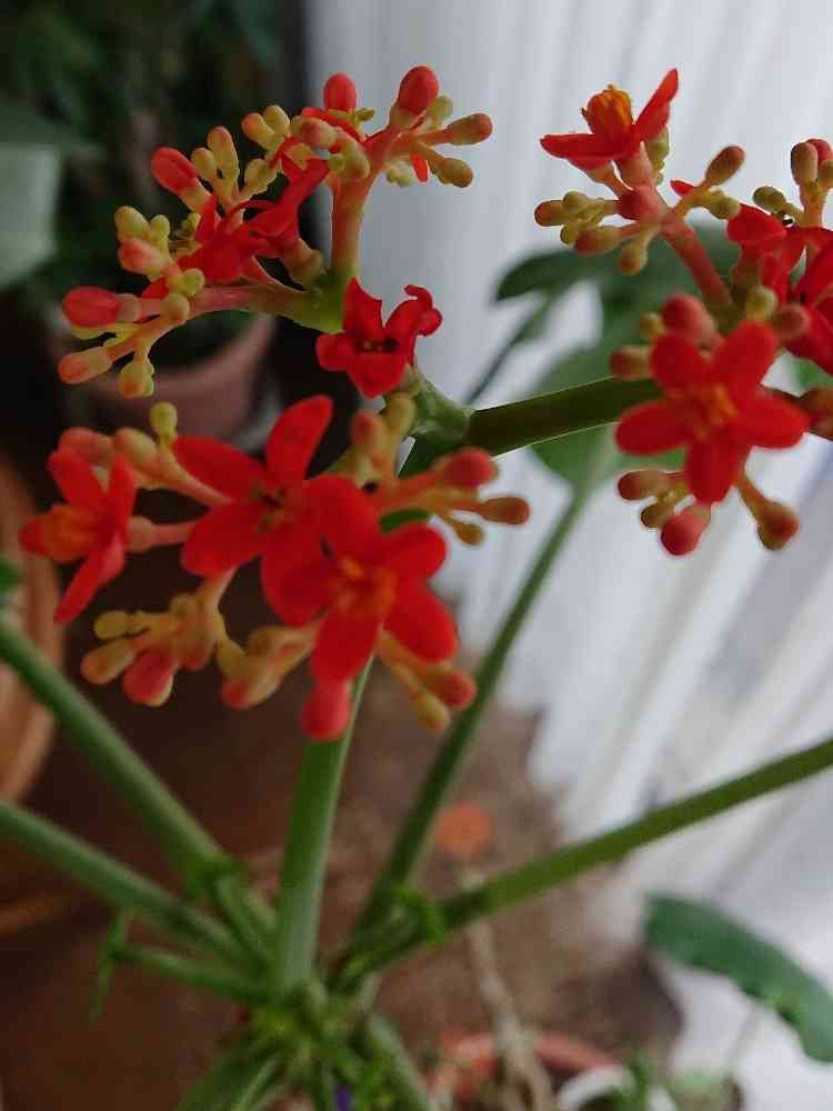 外は真冬日…珊瑚さん沢山花を咲かせてくれてます。背が高いのでてっぺんのお花から下を写して見ましたが…したの方にも花が咲いてます。このはなの塊雌花がいっぱいついてたので受粉してみました。種できたらいいけど😅出来たらまた報告します。