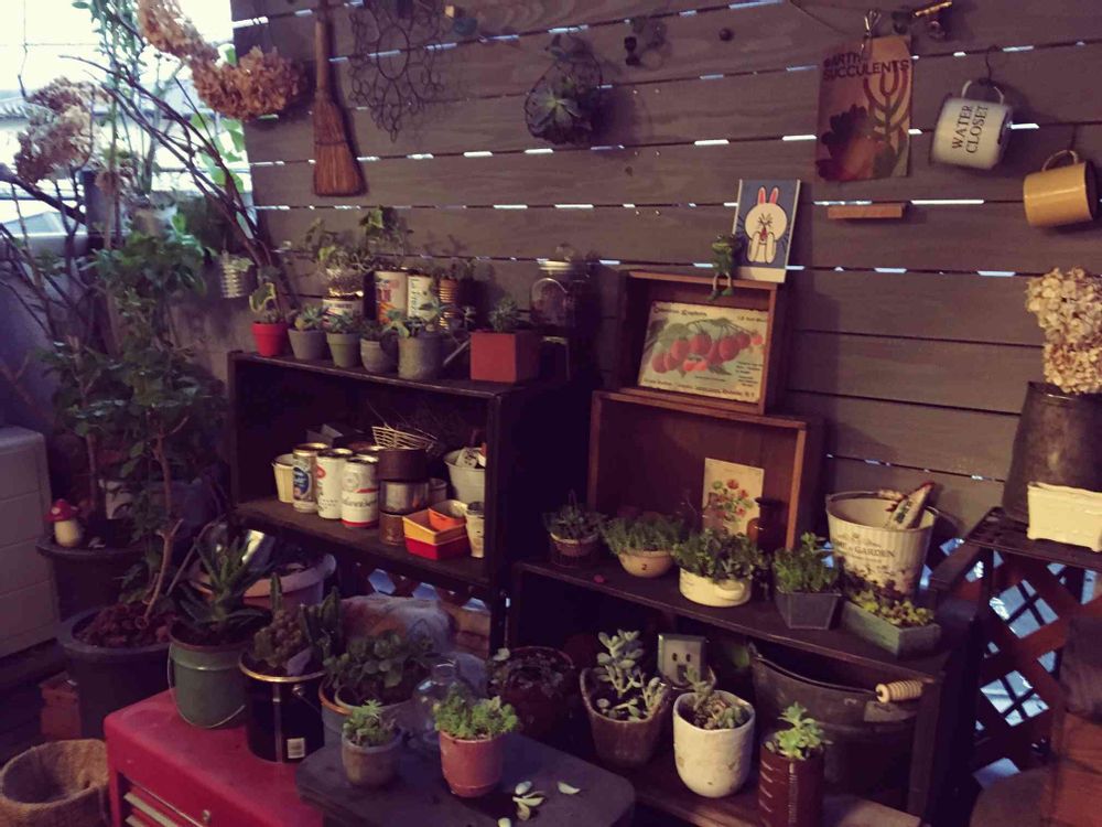 あの壁面は、ラティスに板を張ってだけ。後はりんご箱など…💖