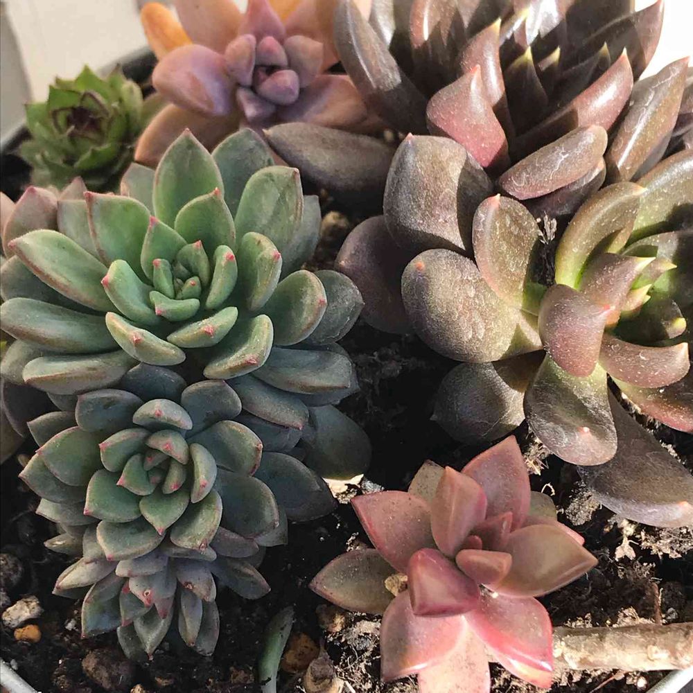 くろすけ=ブラックプリンスなんですが、それに粉っぽいものがついてるものは、タイプ違いの「ブラックレディ」という品種です。(以上、羽兼直行著”多肉植物エケベリア”) これはもしかしたら、ブラックレディなのかもしれません。