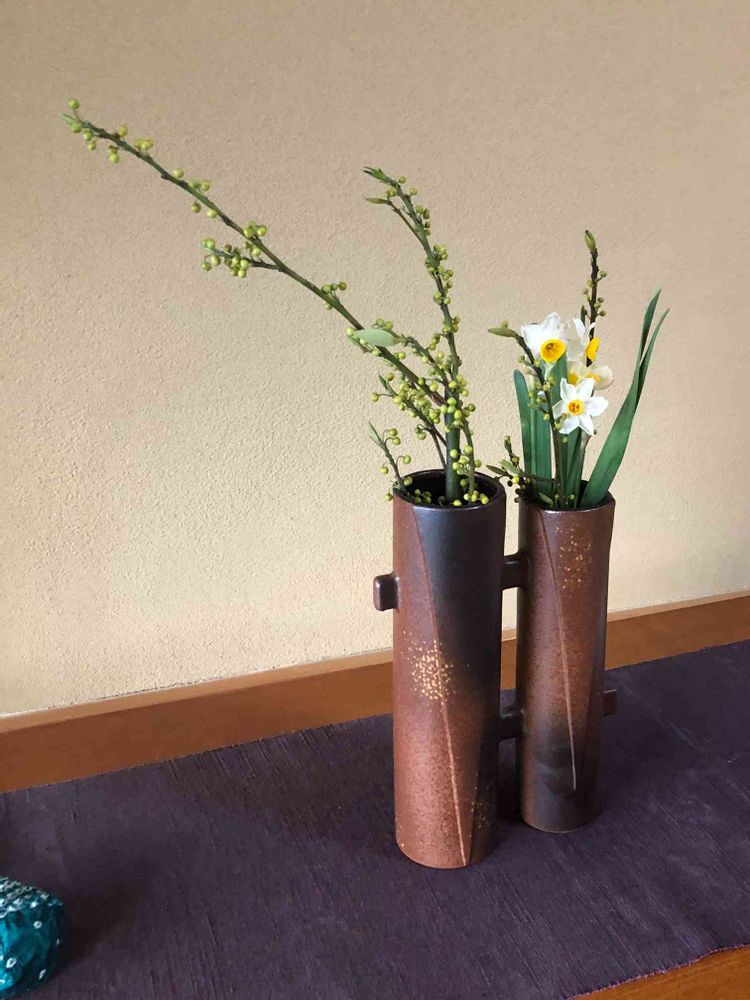 お母さんの花器が、いつも、素敵です。