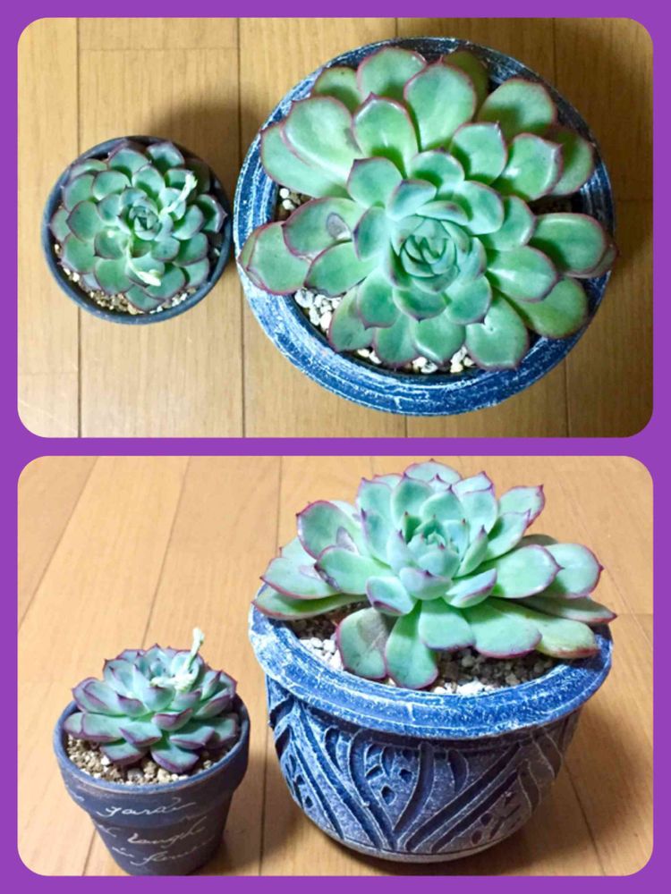 左側のプレリンゼ似さんは、もともとヨボヨボ安売り寄せ植えの小さなヨボヨボさんだったとは思えないくらい立派に! 花芽まで伸びてきました😍
