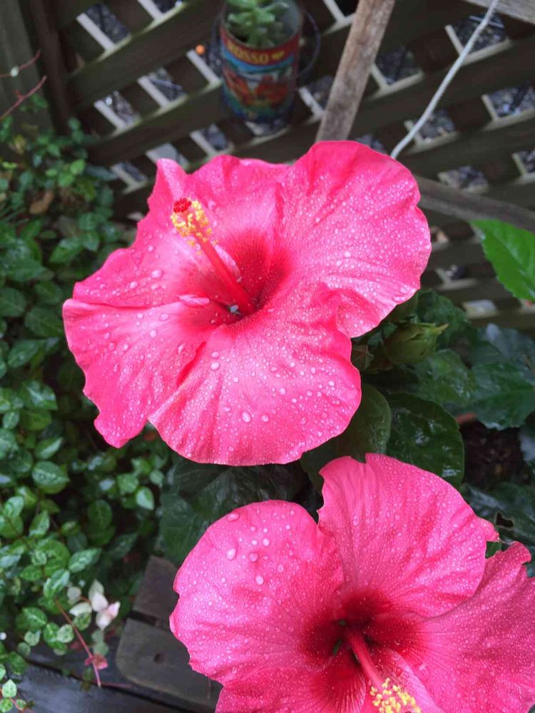 雨上がりのハイビスカスもキレイ〜。二個咲きは嬉しい🙌🌺✨🌺✨🙌