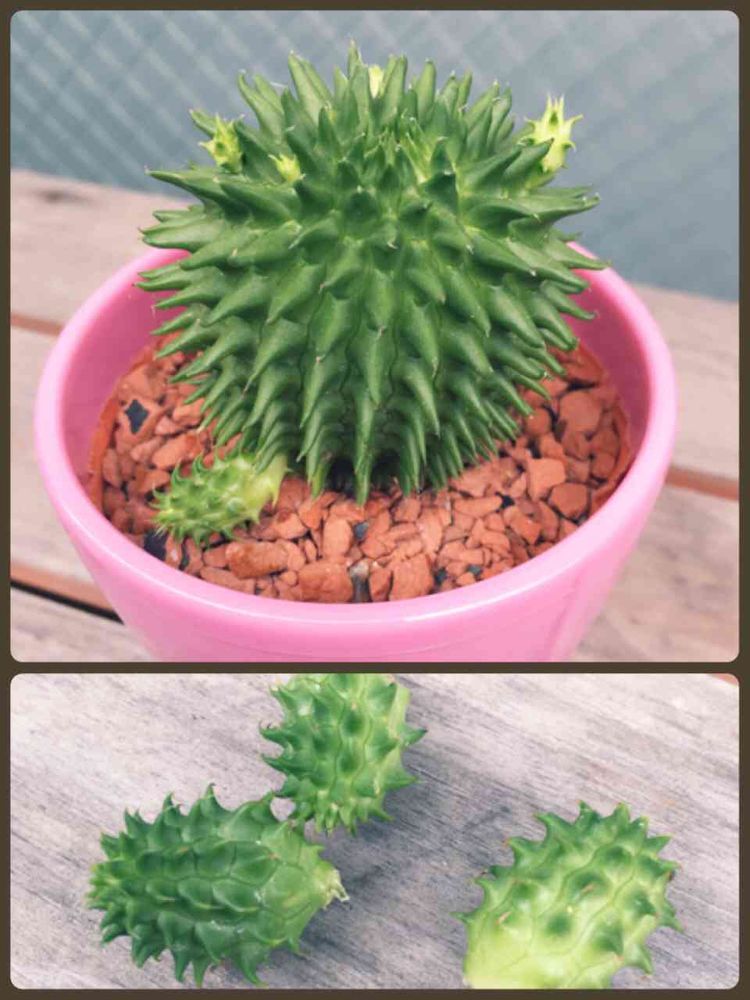 ひと鉢だけ赤い水玉のサボテンを育ていますがうっかりして指にトゲが刺さってチクチクしてます(^o^;)