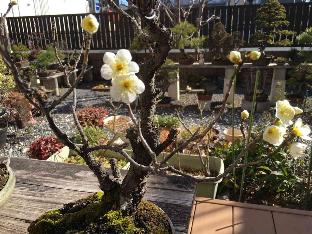 今日の暖かさに、白梅が咲き始めています。今18度です。桜が咲く頃の陽気となっています。
