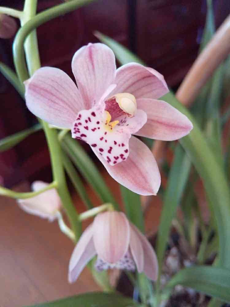 今日の暖かい日差しで窓辺にいたシンピジュームが開き始めました🌸