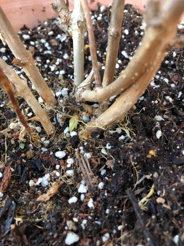 アナベルの鉢植えから、新芽発見🌱✨✨