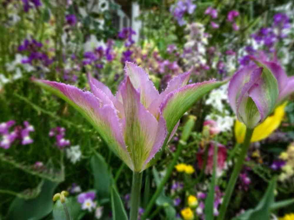 去年の春に咲いたチューリップ・パープルドールです。百合咲でビリデ系(緑色の入った色彩を持つ系統)、ちょっぴり大人の雰囲気を持つ品種です。