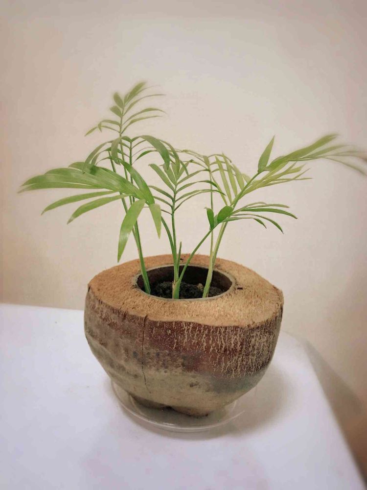 我が家のテーブルヤシです。育ってきて窮屈そうだったので株分けしてココヤシの鉢に…🌱