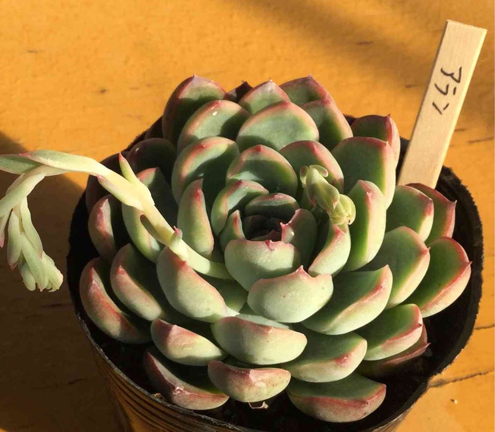 アランは、ブルーの葉にピンクの爪で、葉は厚みがあります。