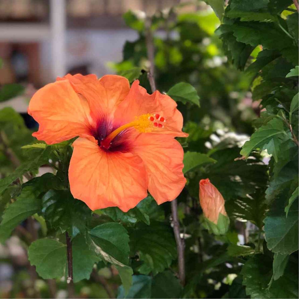 オレンジのハイビスカスも咲きました。蕾も2つ 明日咲きそうな蕾も3つ。楽しみです(๑′ᴗ‵๑)