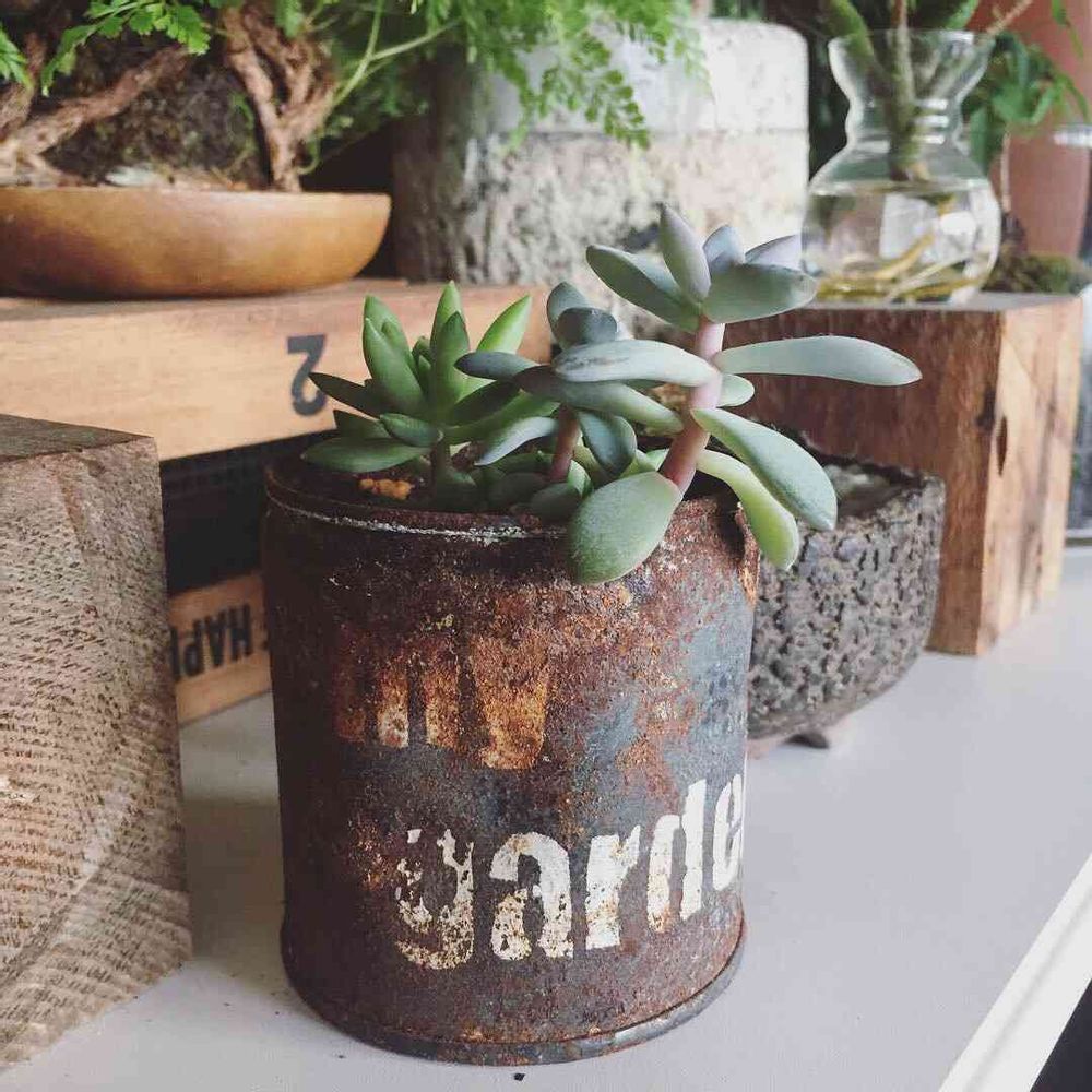 昨年、ロハスフェスタで購入したリメ缶がいい感じに錆てきました。😆