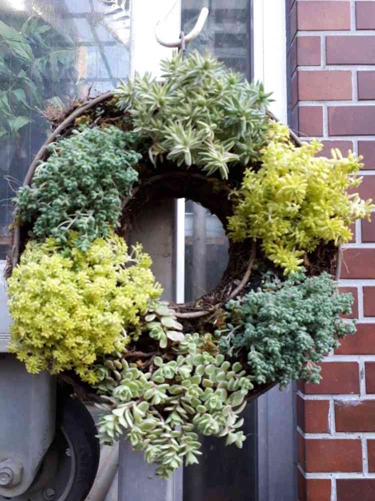 先日セダムで小さなリースを作りました。