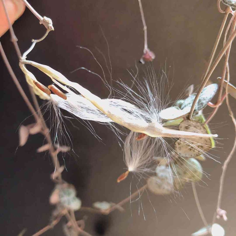 ハートカズラのの先っちょの藁みたいなとこから綿毛出出来たぁ(๑º ロ º๑)!!