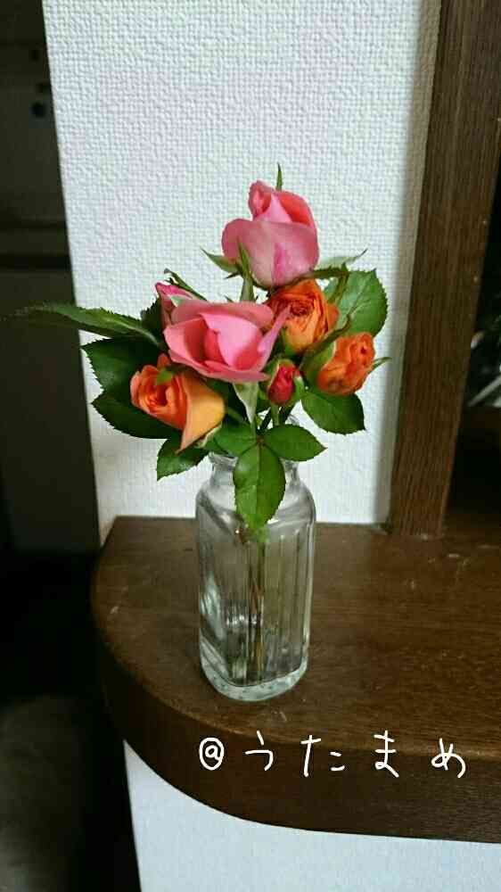 ミニバラが、欲しいけれど、手に入らないので、3番花の蕾を活けて、ミニバラ風💕