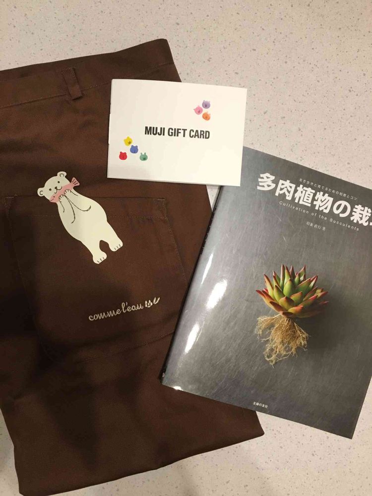 多肉の本とワークエプロン。白くまはカードです。