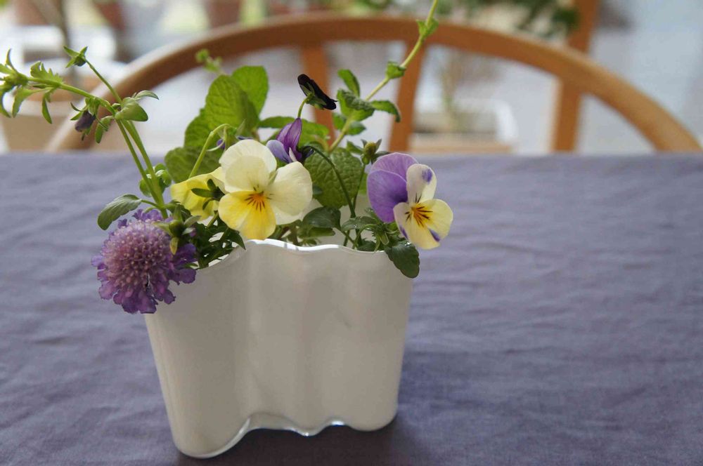 なかなかお花屋さんに行けずにいるので、庭の花をテーブルに。