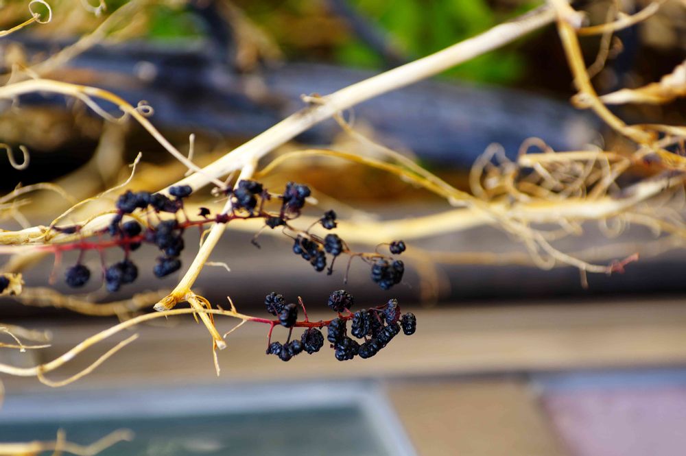 名古屋円頓寺商店街を街歩き。裏路地の枯れ枝にヨウシュヤマゴボウのひからびた実が付いていて,なかなか風流でした。