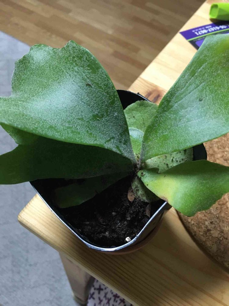小さい貯水葉が二枚に胞子葉4枚と裏に新芽がぽっつり…可愛いなぁ(= ̄ ρ ̄=)
