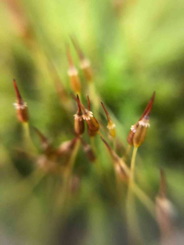 コケのにょきにょき?が白っぽくなってるのがあったので気になってマクロレンズでのぞいて見ると…