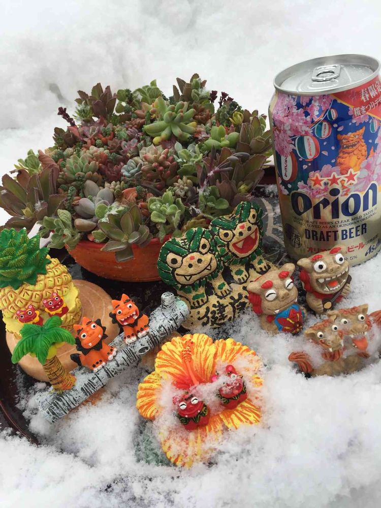 雪に埋められたシーサーもなかなかシュールですねぇ